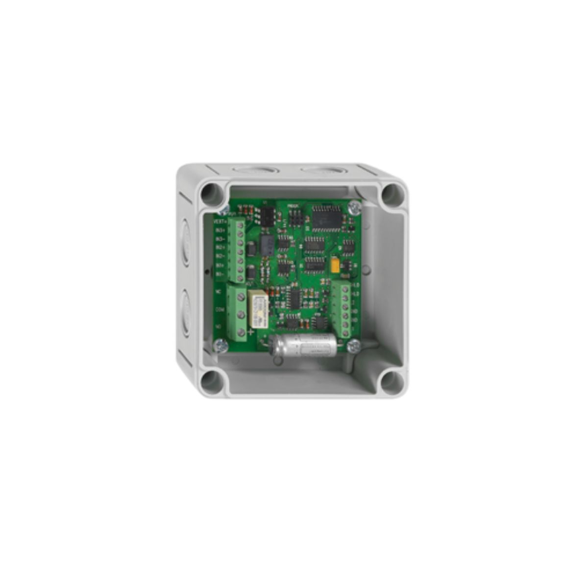 Modulul adresabil 4 IN / 2 OUT Schrack este utilizat în sistemele de detecție incendiu pentru integrarea și controlul mai multor echipamente externe într-un singur punct. Dispozitivul oferă patru intrări pentru monitorizare și două ieșiri pentru comandă, fiind potrivit pentru aplicații unde este necesară gestionarea mai multor funcții simultan.