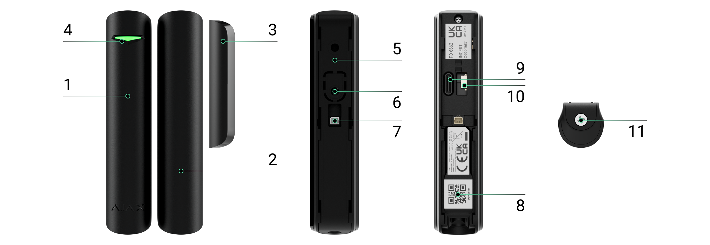 Echipat cu două contacte reed de înaltă precizie, detectorul oferă flexibilitate maximă la instalare, permițând montarea magnetului pe partea stângă sau dreaptă. Setul include doi magneți de dimensiuni diferite, astfel încât dispozitivul să poată fi adaptat ușor în funcție de configurația spațiului.