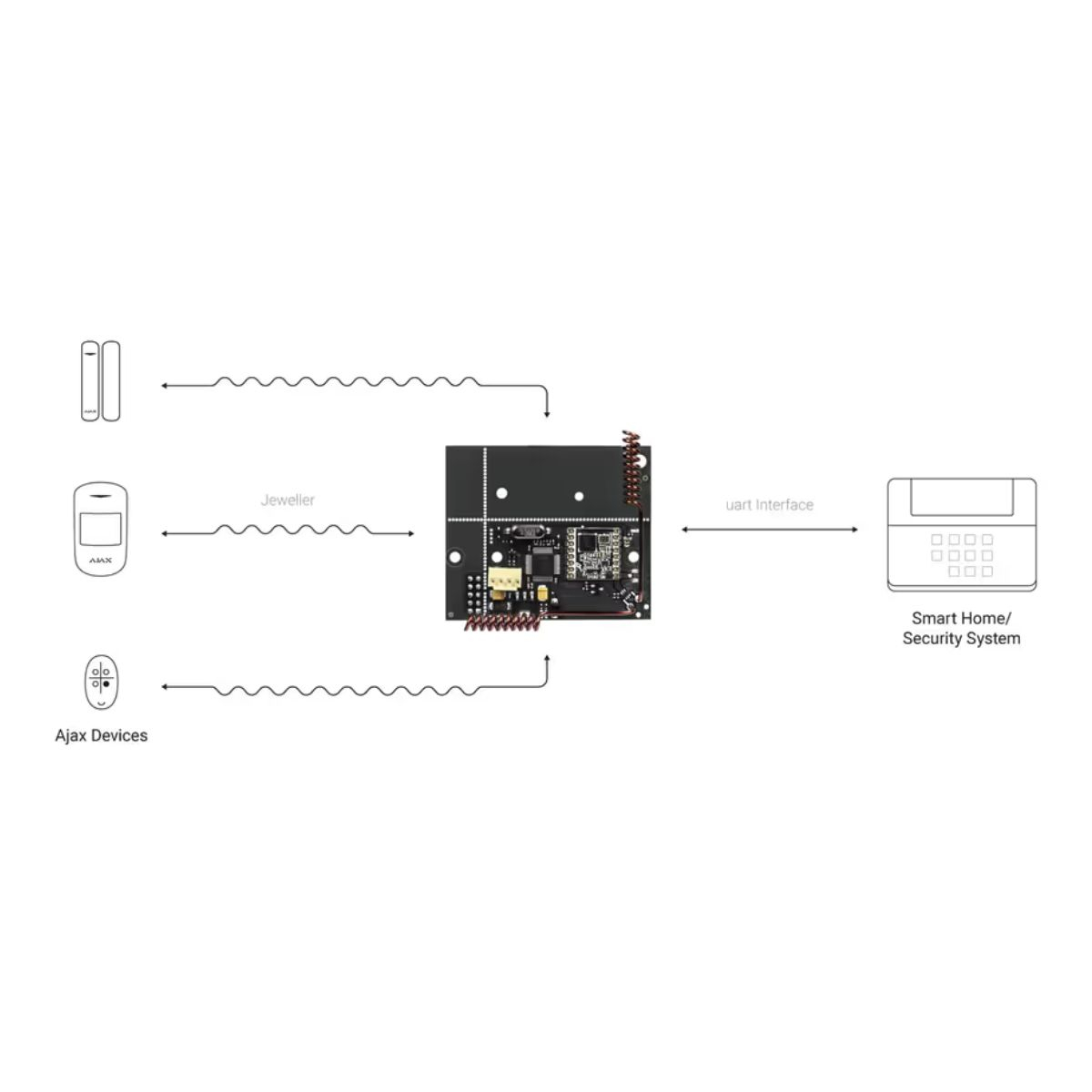 Ajax uartBridge este soluția pentru integrarea detectoarelor wireless Ajax în infrastructuri existente sau sisteme smart home dezvoltate personalizat.