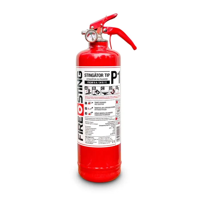 Stingătorul PSI cu pulbere tip P1 – 1 kg este cel mai compact model din gama portabilă, fiind ideal pentru autoturisme, rulote, ambarcațiuni, spații tehnice mici sau utilizare casnică.
